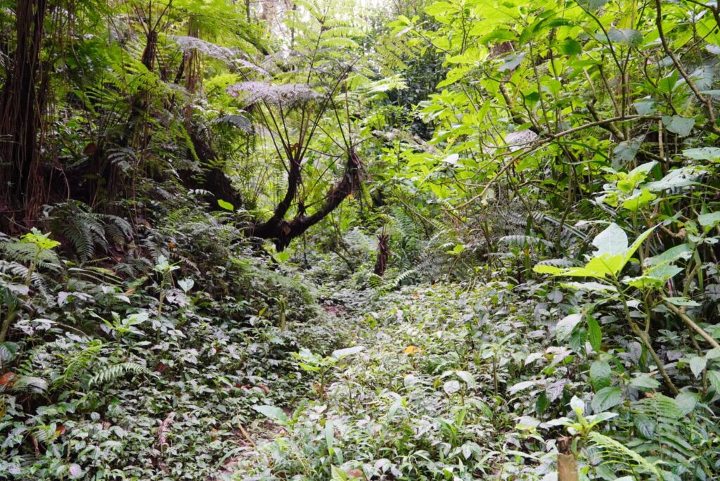 Przy innym kraterze wybijają górące źródła. Doszliśmy tam po 1,5km spacerze przez dżunglę .