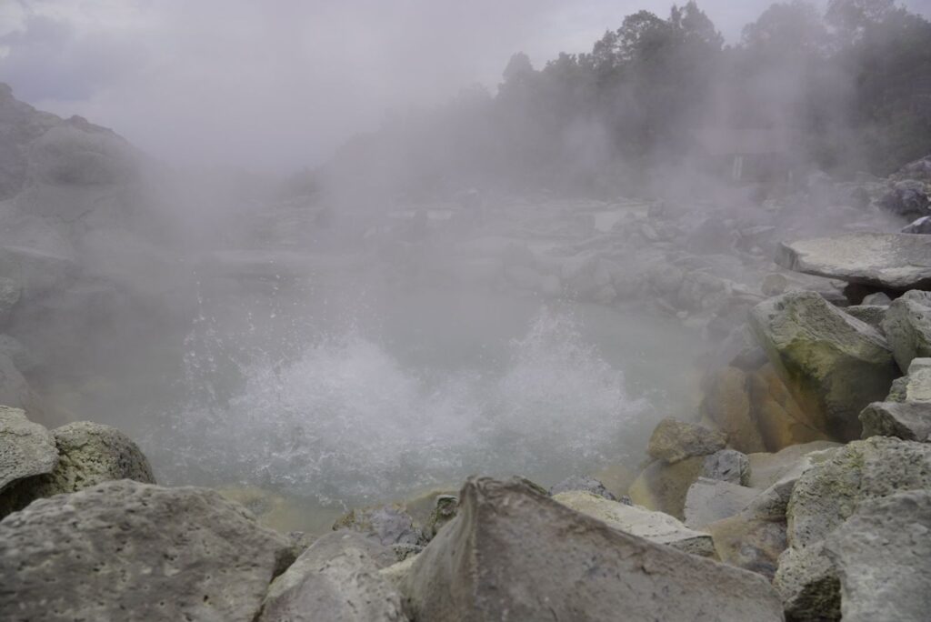 Po dotarciu ukazał nam się księżycowy krajobraz i ki lka sadzawek z gorącą wodą. Jedno z nich że stałą monitorowana temperaturą – raptem 92 stopnie Celsjusza.