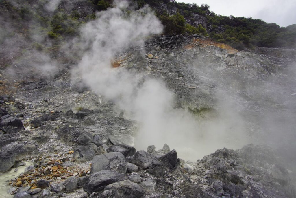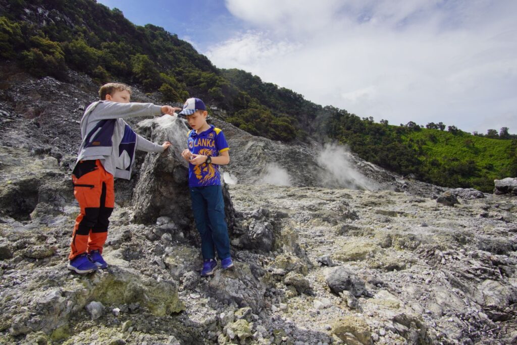 Kolejny dzień w Bandung. Kolejny dzień przygód. Tym razem wyruszamy na wulkan! Raptem ok 30km od miasta. Ale jak to w Indonezji – odległości mierzymy czasem przyjazdu a nie faktyczną liczba kilometrów. I tak tym razem wyniósł ponad godzinę 😃 a dojechaliśmy na krawędź jednego z kraterów ( jest ich tam 4).