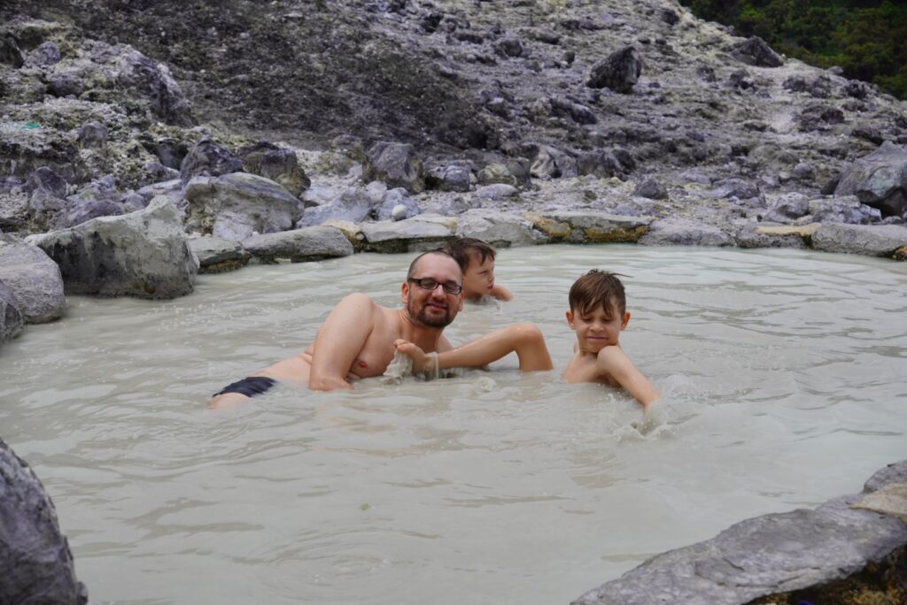 Samo Bandung bardzo zyskało przy bliższym poznaniu. Jest też jeszcze sporo to do zobaczenia: park miniatur, plantacje truskawek ( te z Azji są inne niż w Polsce) , inne gorące źródła… Ale też znalezismy dobre jedzenie i mieliśmy basen. Dzieci mogłyby tu jeszcze zostać – i my też 😉