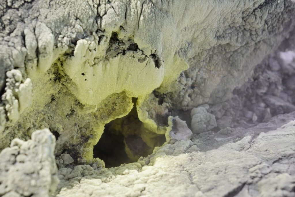 Siarka. Szkoda że nie możemy zrobić zdjęcia unoszacemu się wszędzie zapachowi siarkowodoru 😃 Zgniłe jaja towarzyszyły nam cały czas przy spacerze po krawędzi krateru