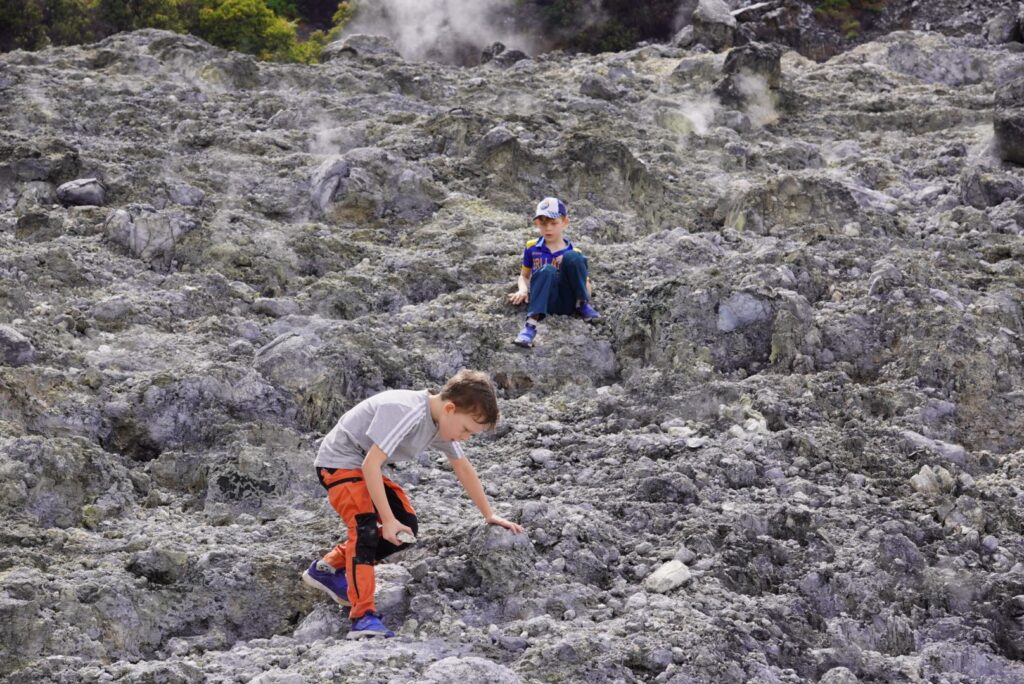 Wulkan jest czynny a ostatnia erupcja była w 2019 r. Teraz wulkan jest też monitorowany 😉 Fajnie że dzieci po wizycie w muzeum geologicznym i “lekcji” o wulkanach teraz widziały wszytko na żywo. No może bez lawy (Jerzyk niepocieszony).