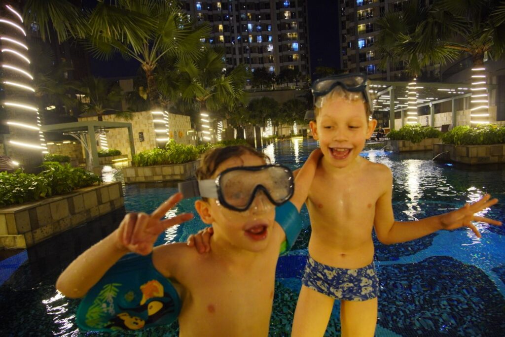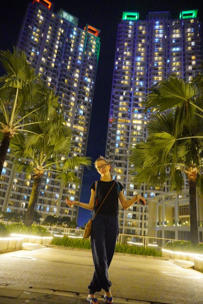 Dolecieliśmy zmarnowani ale całkiem najedzeni. Uzbrojeni w nową kartę SIM i graba ruszyliśmy do naszego lokum. Okazało się to mieszkanko na 18 piętrze jednego z ponad-50 piętrowych wieżowców. Obok wyczesana galeria handlowa a dla mieszkańców – basen 😉