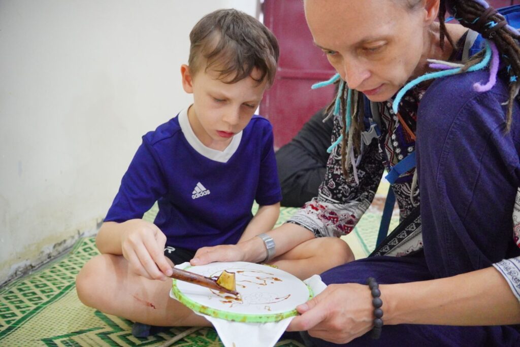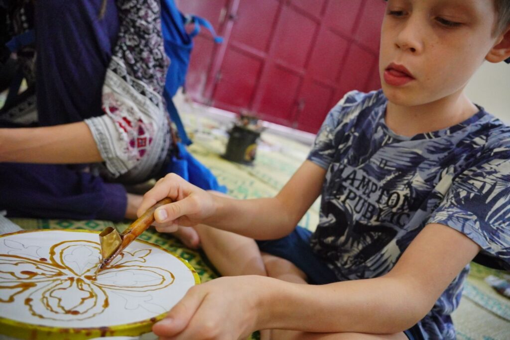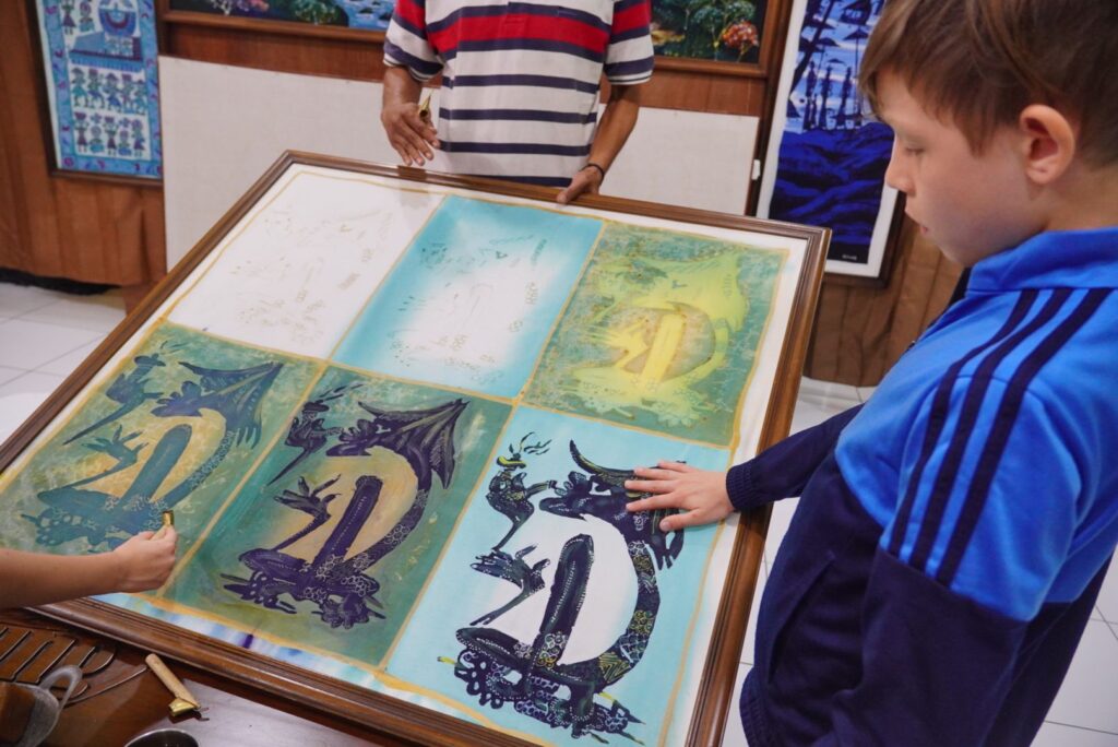 Tego dnia trafiliśmy jeszcze do samodzielnego sprzedawców batiku. Jest to pięknie zdobiona tkanina. Dam proces zdobienia to częste malowanie parafina lub woskiem, farbowanie, wytapianie warstwy wosku i od nowa: nowy wzór… Od ogółu do szczegółu!