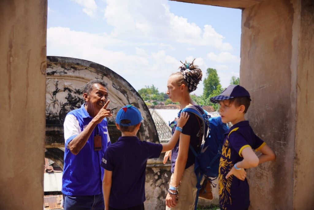 Nasz przewodnik z grupka rodzinnych podróżników.
