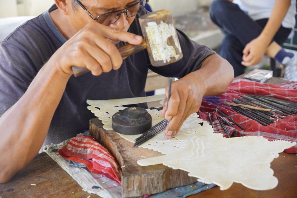 Tutaj Pan robiący tym razem płaskie pacynki do teatru cieni
